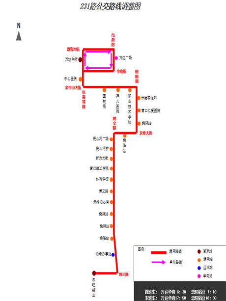 開往萬達廣場方向:7:10—7:45/17:20—18:00(經(jīng)停沿海辦事處時間預(yù)計7:13—7:48/17:23—18:03)。